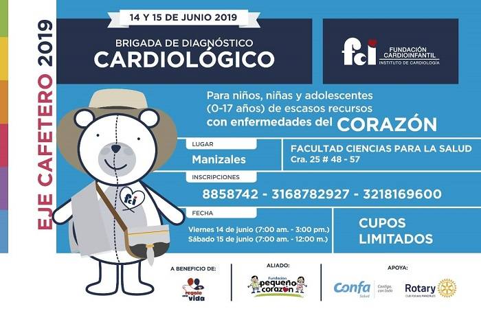 El 14 y 15 de junio de 2019, la Facultad de Ciencias para la Salud de la Universidad de Caldas, será sede de la Décimo Cuarta Brigada de Diagnóstico Cardiológico para niños, niñas y adolescentes entre los 0 y 17 años de edad de bajos recursos con sospecha o enfermedades del corazón, como parte del programa “Regale una vida” liderado por la Fundación Cardioinfantil.