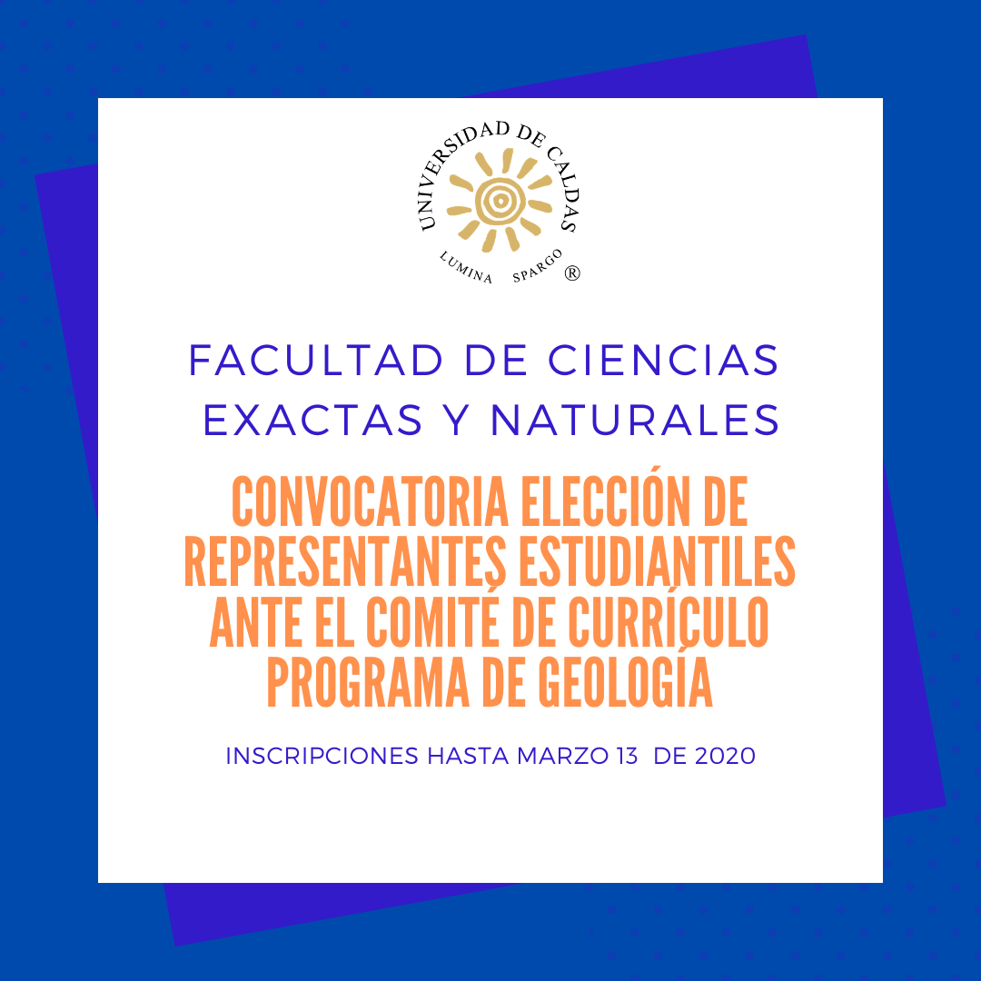 Está abierta la convocatoria para la elección de representantes estudiantiles ante el comité de currículo del programa de Geología adscrito a la facultad de Ciencias Exactas de la Universidad de Caldas.