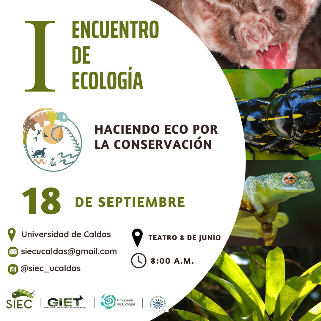 El Semillero de Investigación en Ecología -SIEC- adscrito al Grupo de Investigación en Ecosistemas Tropicales -GIET- de la Universidad de Caldas, dará apertura, este miércoles 18 de septiembre, en el Teatro 8 de Junio, al Encuentro de Ecología “Haciendo Eco por la Conservación”, que se realizará en el ámbito de la celebración del día del Biólogo.