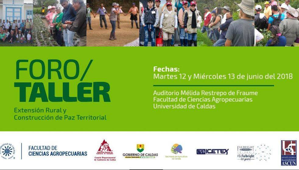 Con el propósito de generar un espacio para la discusión acerca de la extensión rural en la región, la Facultad de Ciencias Agropecuarias de la Universidad de Caldas, la Secretaria de Agricultura y Desarrollo Rural del departamento y el Comité de Cafeteros de Caldas convocan al Foro- Taller de reflexión “Extensión Rural y Construcción de Paz Territorial”.