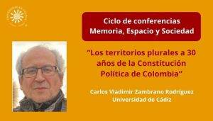 Para esta oportunidad la conferencia se denomina “Los territorios plurales a 30 años de la Constitución Política de Colombia”, y estará a cargo del docente de la Universidad de Cádiz en España, Carlos Vladimir Zambrano Rodríguez.