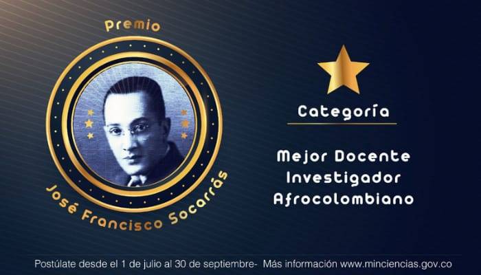 Hasta el 30 de septiembre de 2021 estará abierta la convocatoria para la postulación de candidatos para el Premio José Francisco Socarrás en la categoría: Mejor docente investigador afrocolombiano de instituciones de educación superior en cada una de las siguientes áreas del conocimiento: