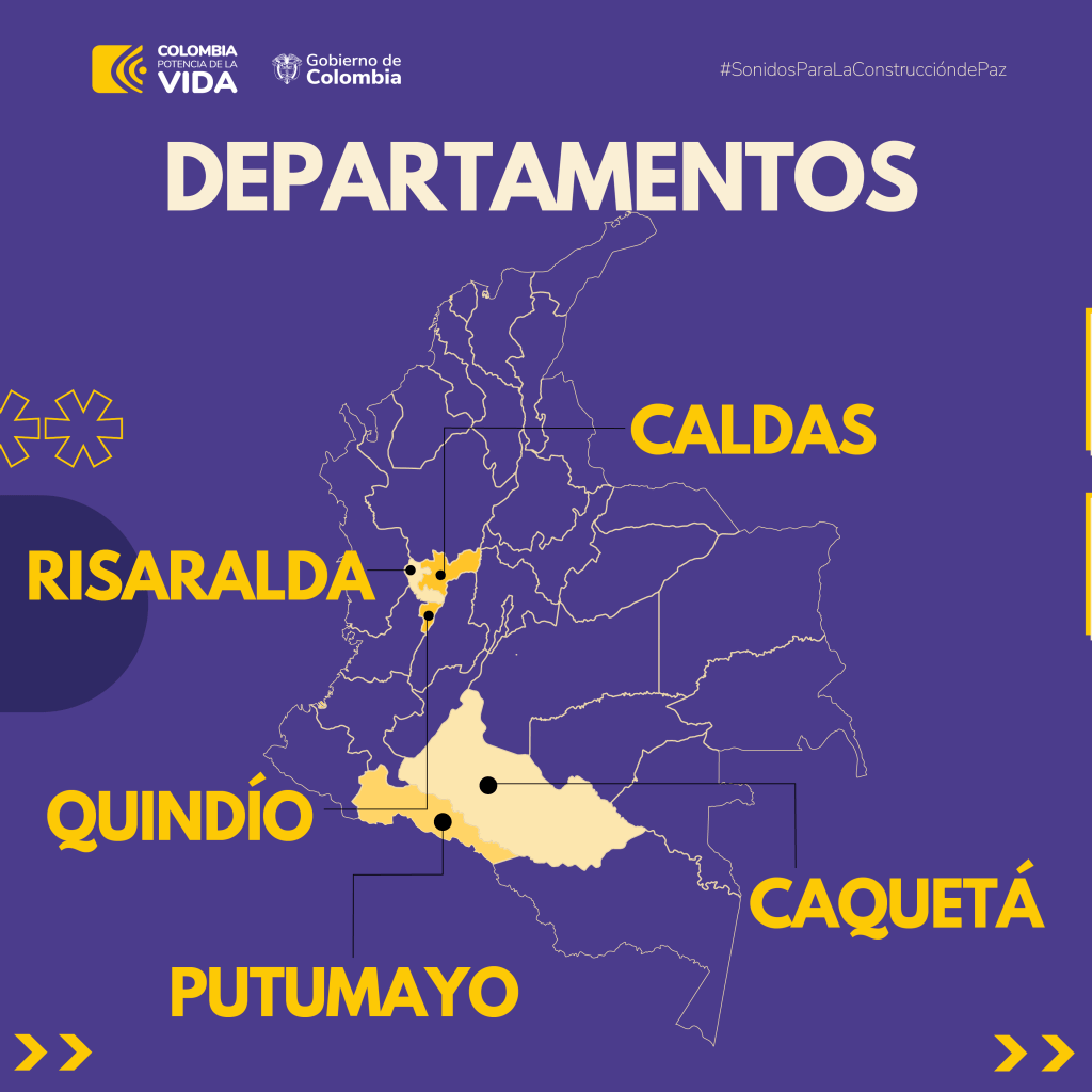 La Universidad de Caldas, en convenio con el Ministerio de las Culturas, las Artes y los Saberes, en el marco del programa presidencial Sonidos par la Construcción de Paz, abre la convocatoria para la formación de Gestores territoriales profesionales o no profesionales, sabedores, apoyos operativos, apoyos psicosociales y apoyos pedagógicos de los departamentos de Caldas, Caquetá, Putumayo, Quindío y Risaralda. La convocatoria está abierta del 15 hasta el 24 de mayo.